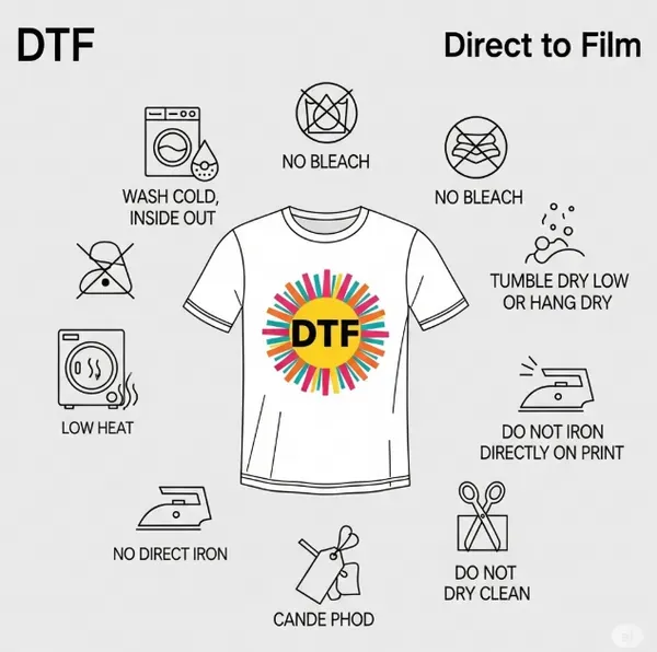 DTF transfer care directly influences the longevity of DTF prints. After application, allow a cure time of 24–48 hours, then wash with cold water and a mild detergent, keeping the garment inside out. Gentle handling, avoiding harsh chemicals and high heat, helps colors stay bright longer.
