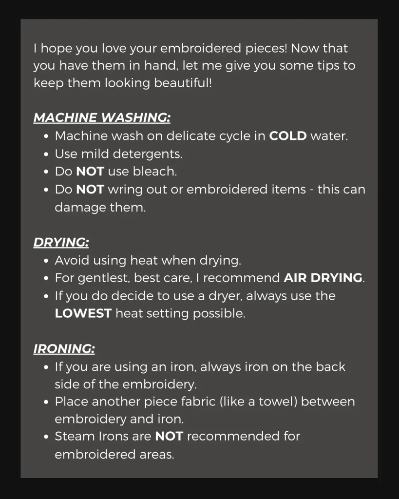 What common mistakes should I avoid with embroidered care tips?