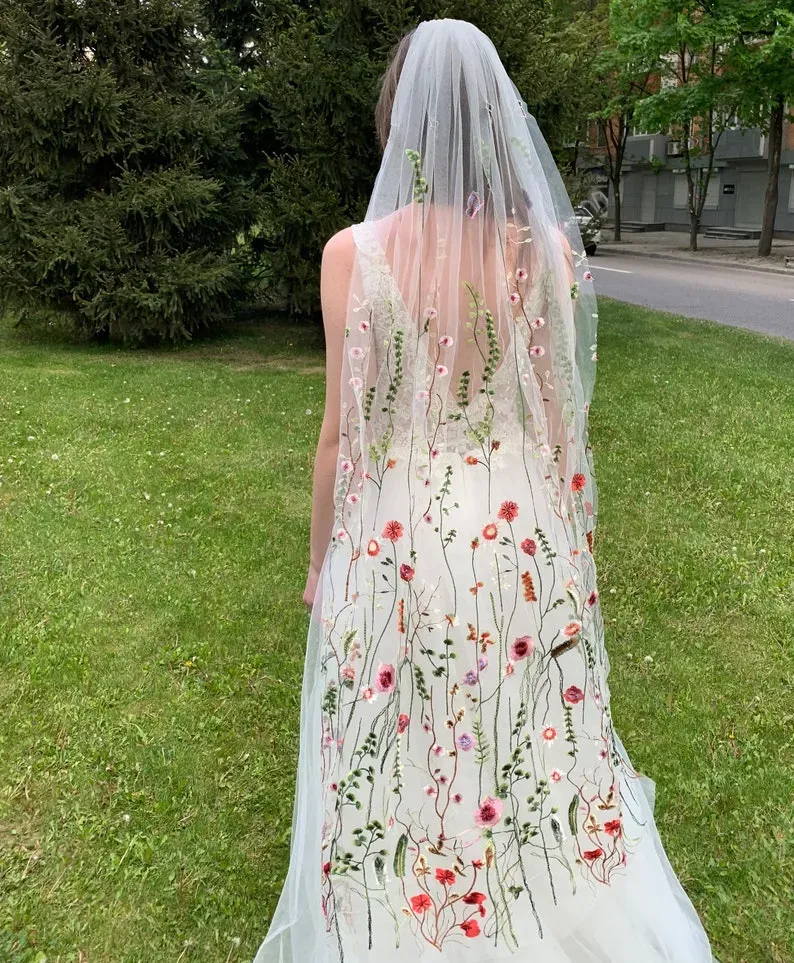 Embroidered wedding veils: Framing the bride with delicate borders and motifs