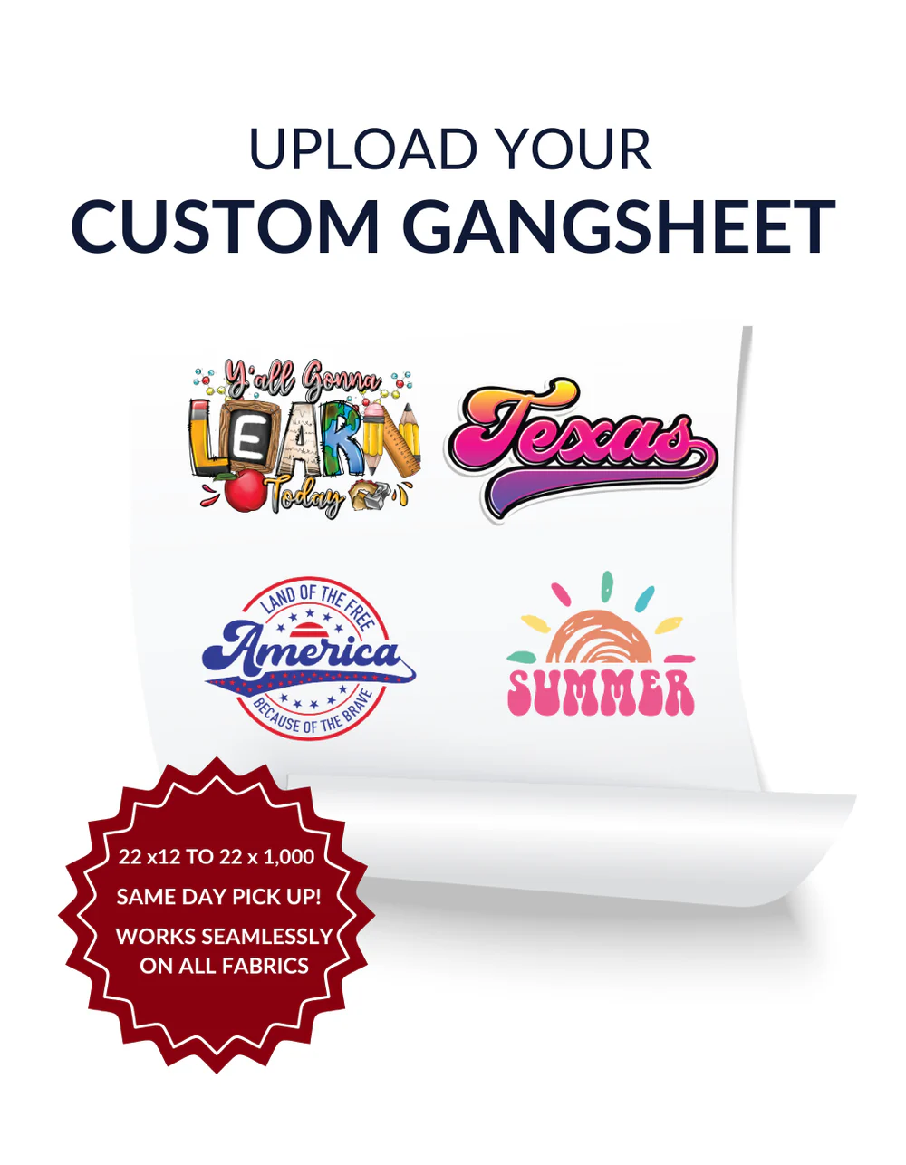 In the fast-paced world of custom apparel, timing is everything. Our facility is optimized for lightning-fast production, ensuring that your uploaded gangsheets move from the printer to shipping in record time. We offer various lengths to suit your project needs, providing unmatched flexibility for both small-run prototypes and large-scale retail launches. With our streamlined upload process, you can submit your gangsheet designs with confidence, knowing our team will handle your vision with the professional care it deserves.